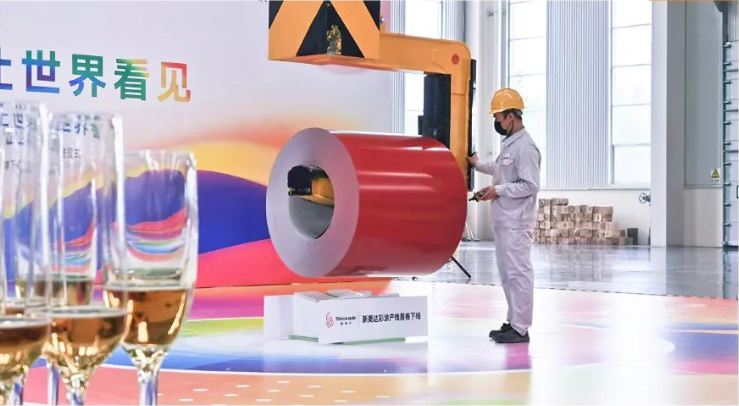 On May 11, 2022, the first color-coated steel coil of Shinmade was successfully rolled off the production line, and China's high-quality color graphics brand welcomed a new member. Leaders and partners at all levels witnessed this historic moment on site.